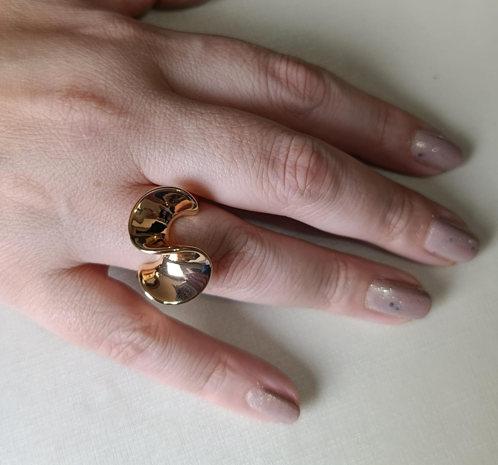 Anel Ondas do Mar banhado a ouro - Tamanho 24