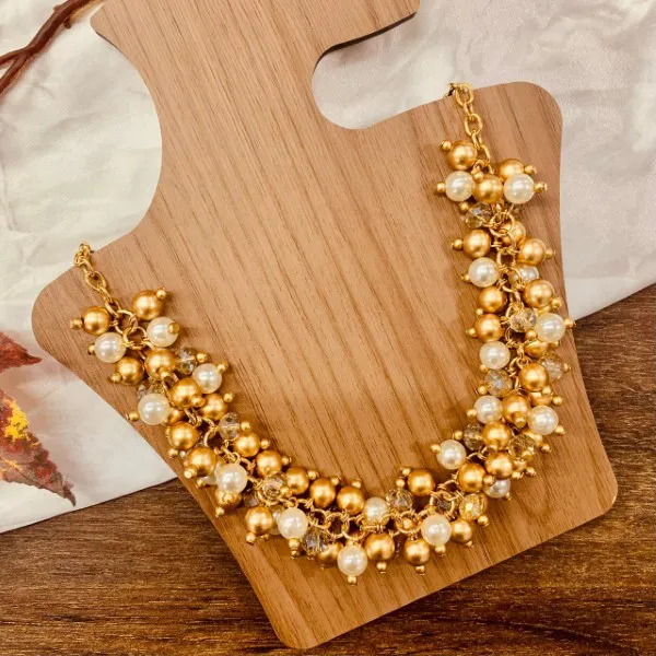 Esse colar é a escolha perfeita para quem busca um acessório marcante, moderno e cheio de personalidade. Com uma combinação elegante de correntes feitas em alumínio dourado, cristais translúcidos e contas acrílicas, a peça se destaca pelo brilho e pelo volume equilibrado.