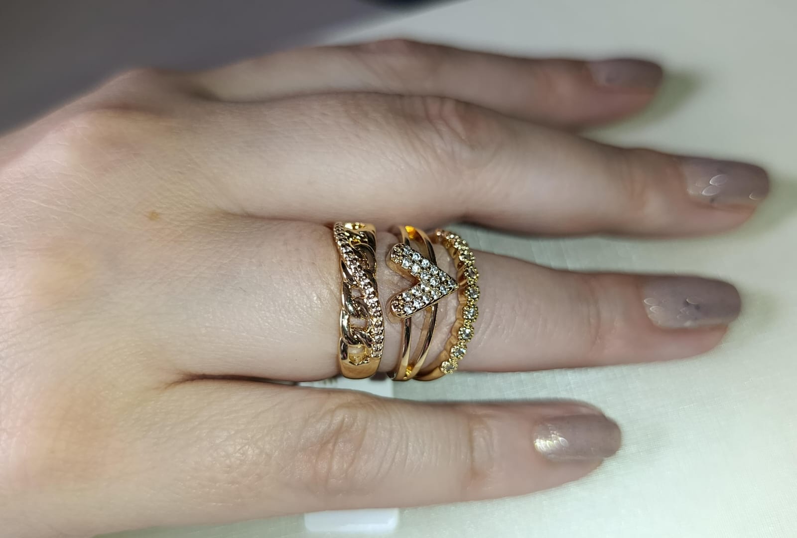 Trio de anéis com zirconias banhado a ouro - Tamanho 19